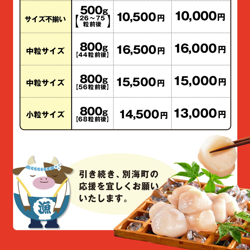 - 【ふるさと納税】高評価★4.84 ホタテ (選べる9サイズ 旨粒 大粒 大玉 特大 ジャンボ / 選べる容量 500g 1kg 2kg 冷凍 瞬間冷凍 ふるさと納税 ほたて 帆立 訳あり ふるさと 人気 北海道産 魚介 海鮮 貝柱 生食 北海道別海町 年末配送 年内配送 )