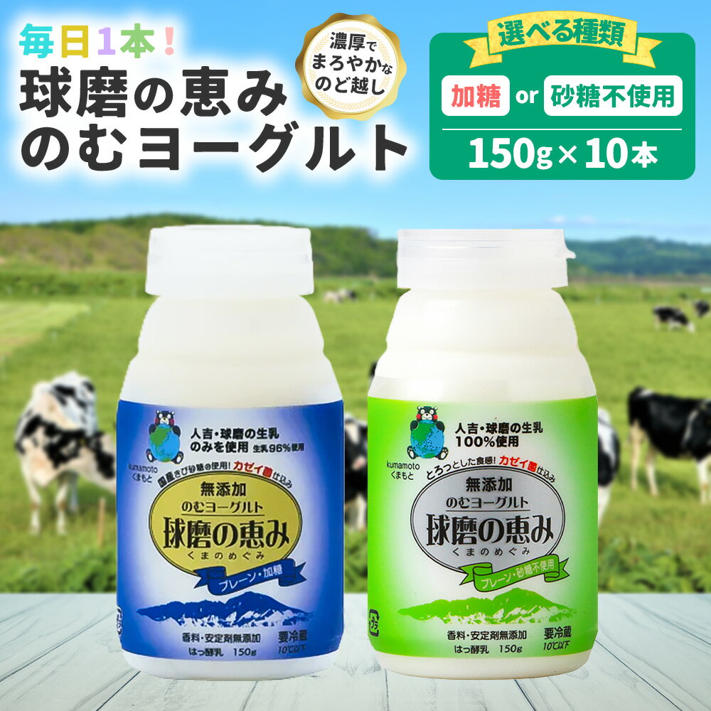 - 【ふるさと納税】<選べる種類>毎日1本!球磨の恵みのむヨーグルト 加糖 プレーン・砂糖不使用 計1.5kg(150g×10本) 生乳 乳酸菌 ドリンクタイプ 飲料 冷蔵 熊本県産 国産 九州 熊本県 湯前町 送料無料