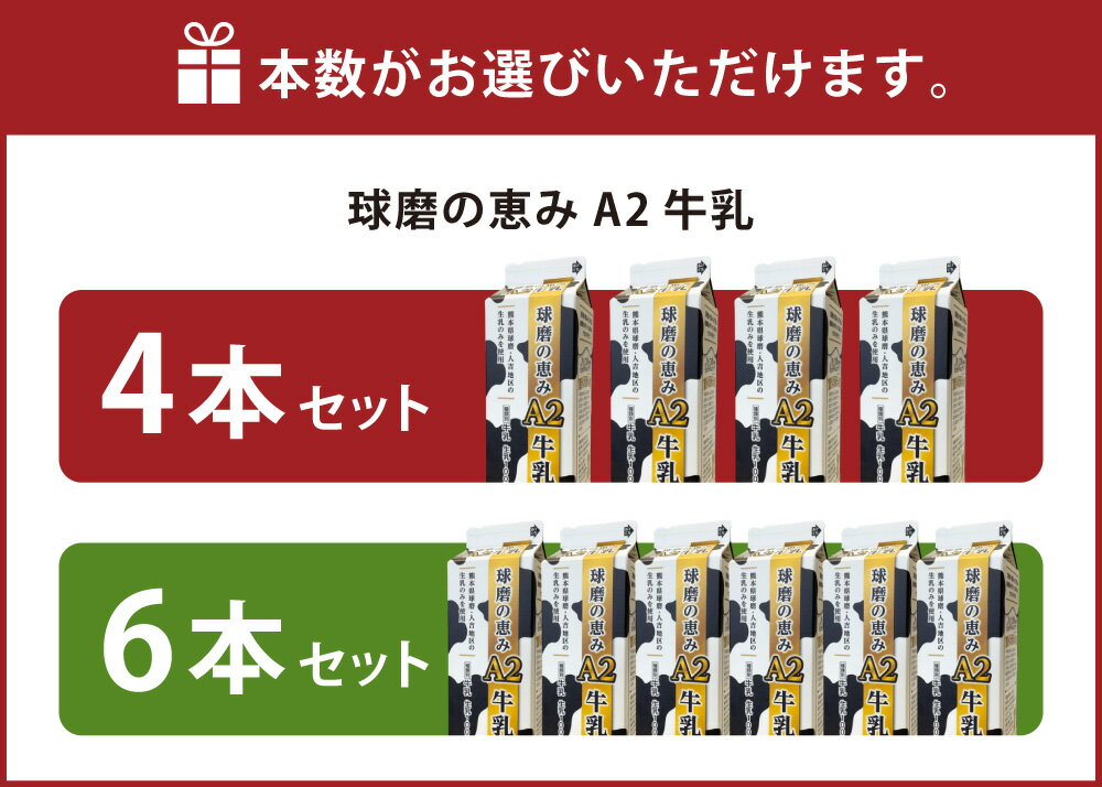 - 【ふるさと納税】<選べる内容量>球磨の恵みA2牛乳 4パック・6パック 1パック1000ml 1L 計4L・計6L 生乳100% ぎゅうにゅう ミルク ドリンク 飲料 冷蔵 熊本県産 国産 九州 熊本県 湯前町 送料無料