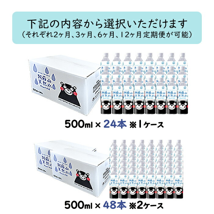 【ふるさと納税】水 熊本 阿蘇 阿蘇山 天然水 500ml × 24本 1ケース 48本 2ケース 定期便 みず 飲料 くまモンラベル 熊本県 ミネラルウォーター 非加熱殺菌 賞味期限2年 備蓄 保存用 送料無料【地場産品基準:類型8イ】