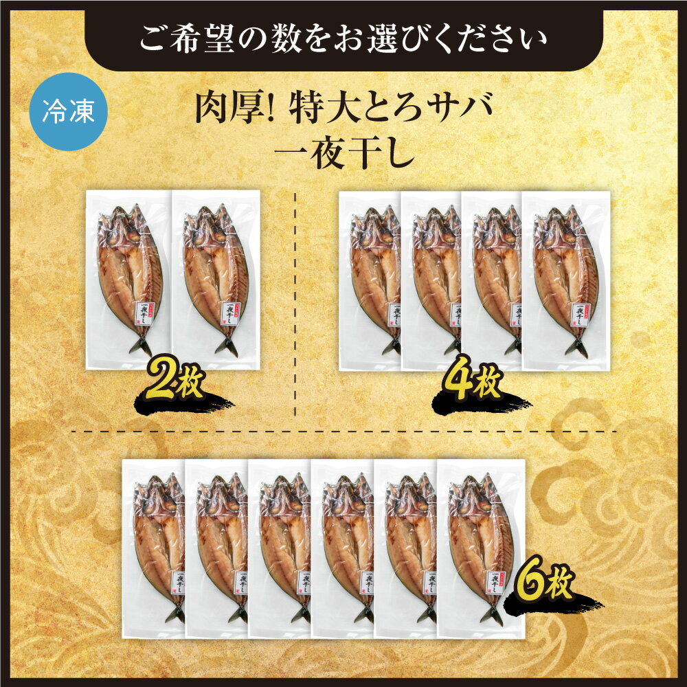 - 【ふるさと納税】 肉厚 特大 とろサバ 一夜干し 【 選べる 数量 】 2枚~6枚 鯖 さば 開き 国産 焼き魚 干し魚 干物 魚 魚介 水産 厳選 お取り寄せ グルメ 冷凍 おかず おつまみ 北海道 札幌市