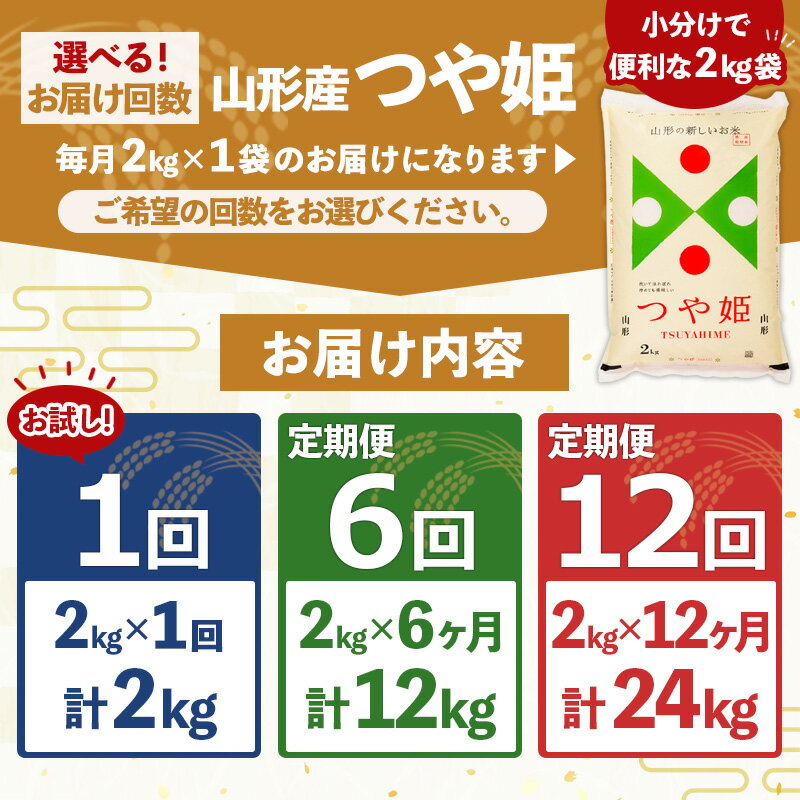 - 【ふるさと納税】令和7年産 つや姫 ★高評価4.9★山形産 特別栽培米 つや姫 2kg 1回 6ヶ月 12ヶ月 24kg 12kg fz21-331 山形 お取り寄せ 送料無料 ブランド米 山形市 山形県 精米 お届け回数が選べる 配送回数が選べる