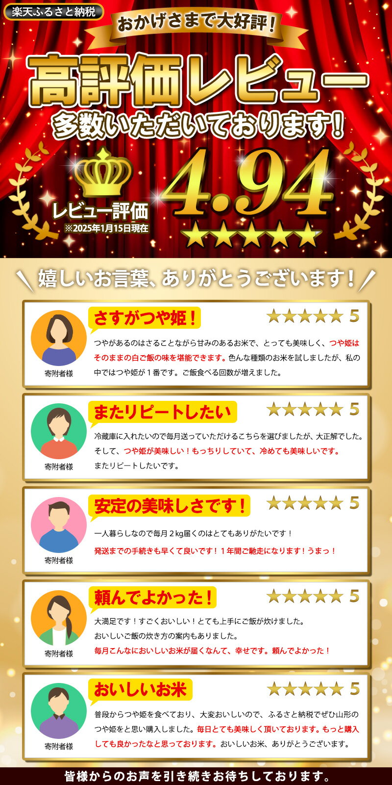 【ふるさと納税】令和7年産 つや姫 ★高評価4.9★山形産 特別栽培米 つや姫 2kg 1回 6ヶ月 12ヶ月 24kg 12kg fz21-331 山形 お取り寄せ 送料無料 ブランド米 山形市 山形県 精米 お届け回数が選べる 配送回数が選べる