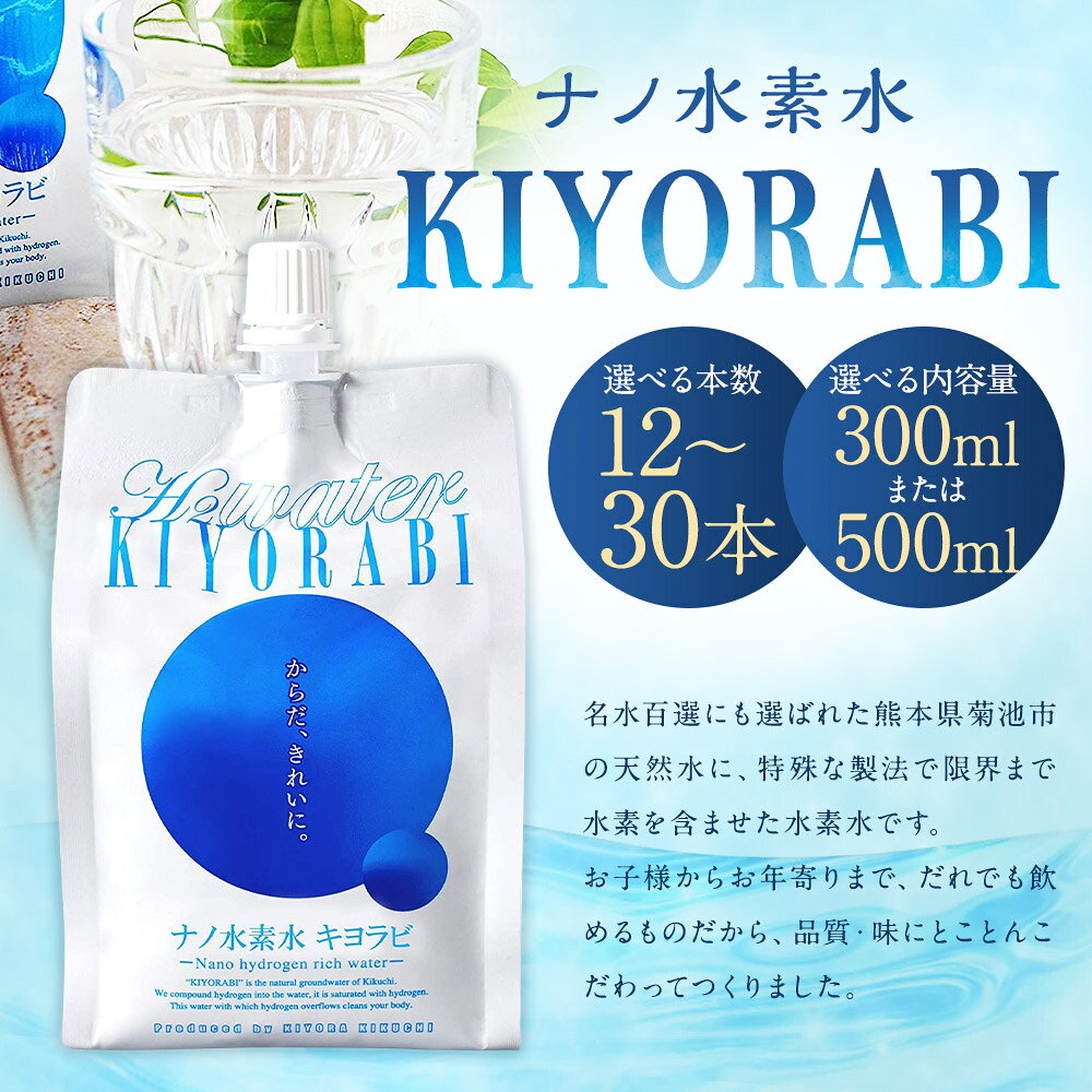 - 【ふるさと納税】ナノ水素水キヨラビ 300ml/500ml 12本/18本/30本 選べる内容量 定期便あり 水 水素水 天然水 飲料水 ミネラルウォーター アルミパウチ パウチ 国産 九州産 熊本県産 菊池市産 送料無料《出荷時期をお選びください》