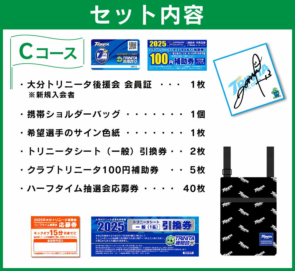 【ふるさと納税】2025年度 大分トリニータ 後援会 Cコース 会員証 希望選手のサイン色紙 1枚 サイン チケット 携帯ショルダーバッグ 引換券 補助券 抽選応募券 優待特典 サッカー 応援 大分県 送料無料