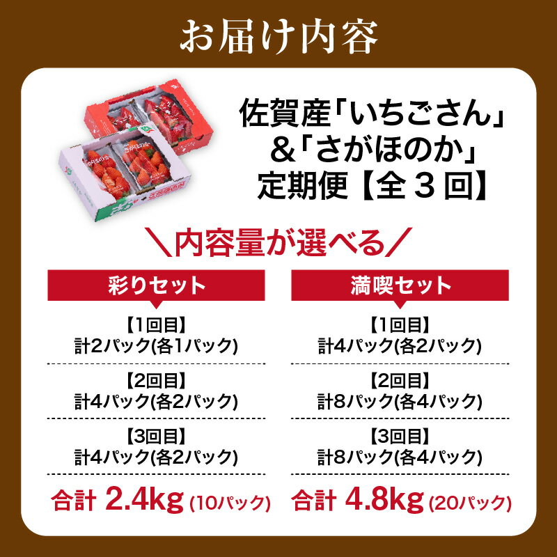 【ふるさと納税】佐賀産いちご「いちごさん」&「さがほのか」定期便【全3回】<内容量が選べる/彩りセット・満喫セット> 【 果物 フルーツ 苺 先行予約 ふるさと納税 果物 】