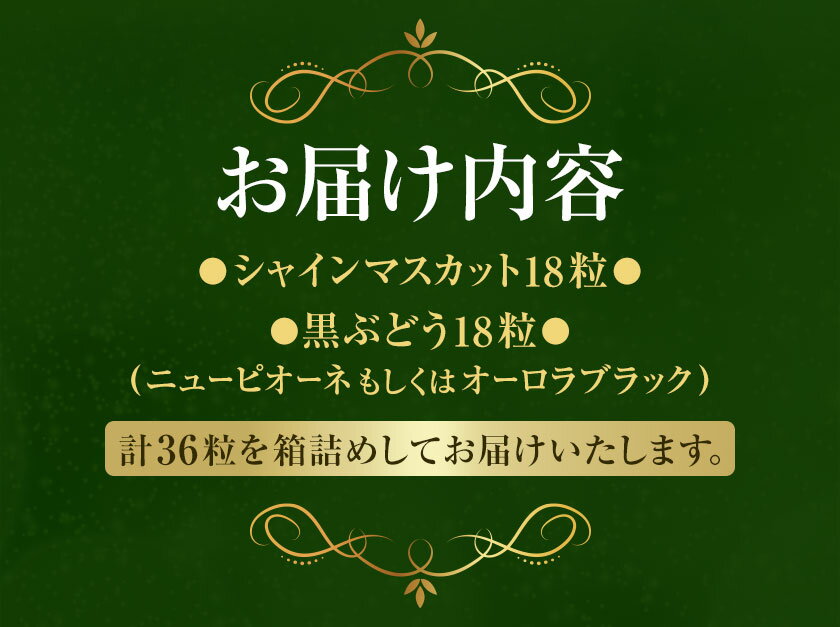 - 【ふるさと納税】【2026年先行予約】ぶどうの宝石箱 1箱 36粒 たけまさぶどう園 《2026年8月上旬-10月中旬頃出荷》岡山県 浅口市 シャインマスカット ニューピオーネ オーロラブラック フルーツ 果物 くだもの ぶどう マスカット 国産 岡山県産 【配送不可地域あり】(離島)