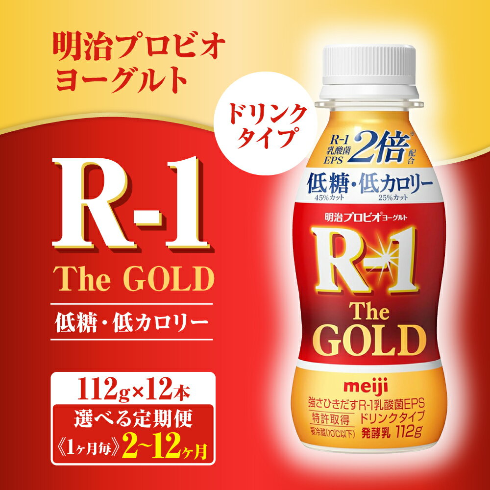 - 【ふるさと納税】【定期便】明治プロビオヨーグルトR-1ドリンクタイプ The GOLD 低糖・低カロリー 112g×12本 選べる定期便回数 飲み物 飲料 ドリンク 乳酸菌 EPS 明治 meiji 茨城県 守谷市 送料無料