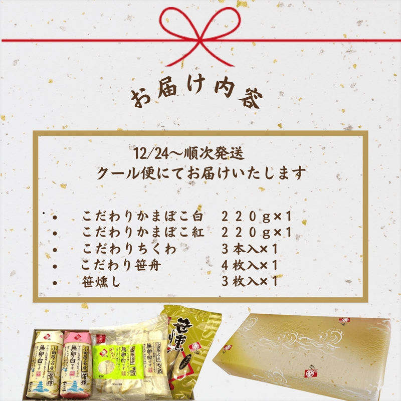 【迎春】こだわりかまぼこ詰め合わせ5品 こだわりギフト〈出荷時期:2025年12月24日~順次発送〉【 ギフト プレゼント 贈り物 お返し おいしい 神奈川県 南足柄市 】