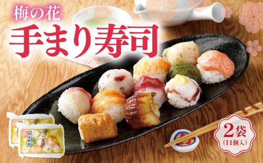 - てまり寿司 2袋(11種) 梅の花 手まり寿司 冷凍 寿司 てまり 一口サイズ ひとくちサイズ 彩り お寿司 寿司 すし てまり寿司 手毬寿司 ギフト 贈答 プレゼント 贈り物 井手町 京都【225】