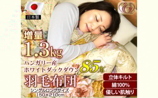 羽毛布団【SL(シングルロング)】ハンガリー産ホワイトダックダウン85% ピンク系[№5616-7141]1013
