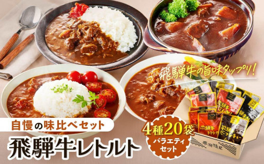 - 【3月発送】訳あり 飛騨牛レトルト4種20袋! バラエティセット 飛騨牛 肉 牛 カレー ビーフカレー トマトカレー ビーフシチュー デミハヤシ レトルト 20袋 簡易包装 レトルトカレー ご当地カレー おいしい 便利 飛騨高山 ふるさと清見21 DC001VC03
