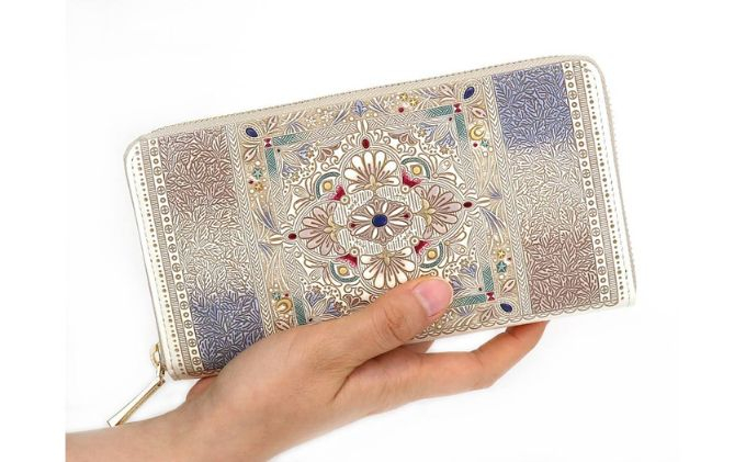 - 【文庫屋大関】 大容量 ぐるっとファスナーの長財布 夢幻のタピ【皮革工芸品】[№5619-0868]