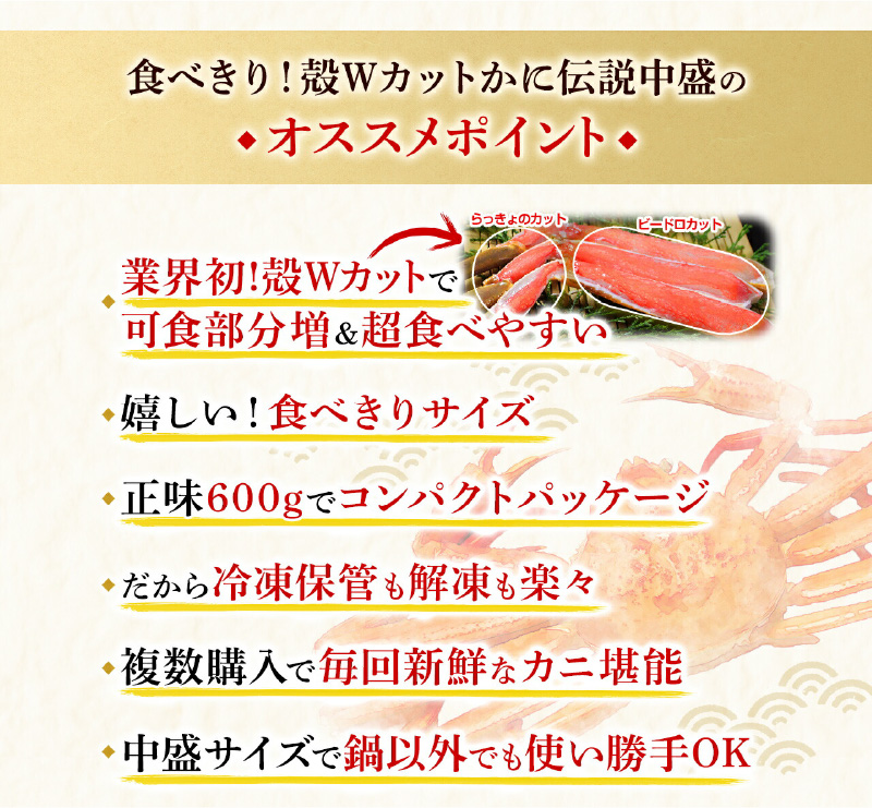 - [12月16日~31日着(指定日不可)]年内お届け先行予約受付中!ますよね商店の元祖カット済み生ずわい蟹600g(総重量800g)【生食可】【 ますよね カニしゃぶ 】 [001-a025-0_A-b]【敦賀市ふるさと納税】