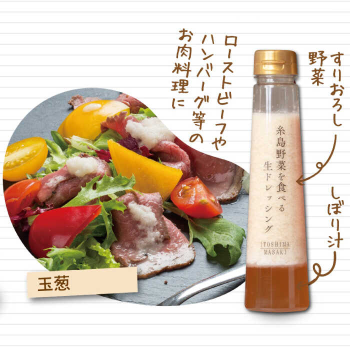 - 【全6回定期便】【 ご家庭用 】 糸島野菜を食べる生ドレッシング ( 玉葱×3本 ) 糸島市 / 糸島正キ [AQA024] ドレッシング セット 定期便 ギフト 無添加 人気 野菜 酵素 すりおろし 玉葱
