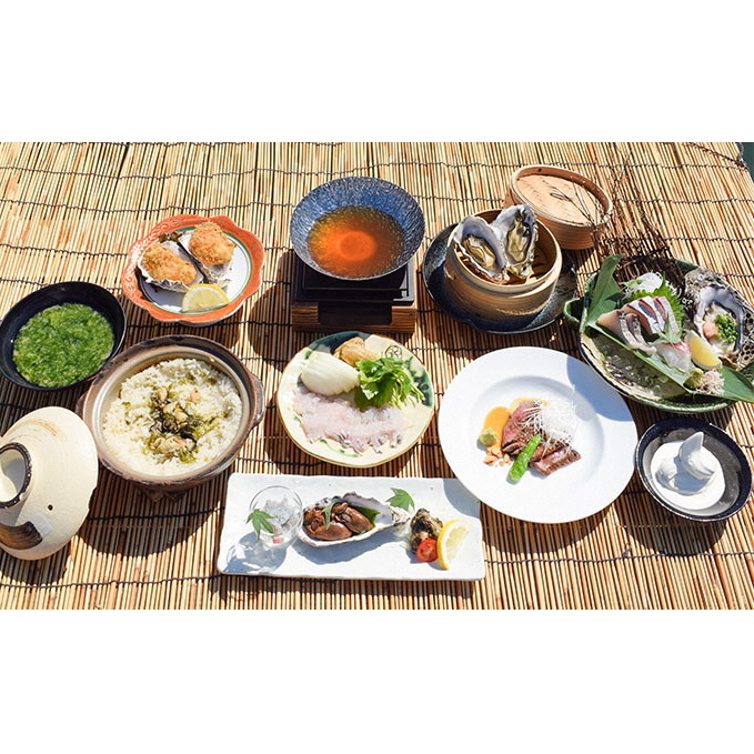- 【期間限定・1日1組限定】送迎付きプラン!『くいどうらく』への旅(2名様1組) お食事券 海の幸 海鮮 牡蠣 旬の食材 前菜 季節の造り 鍋物