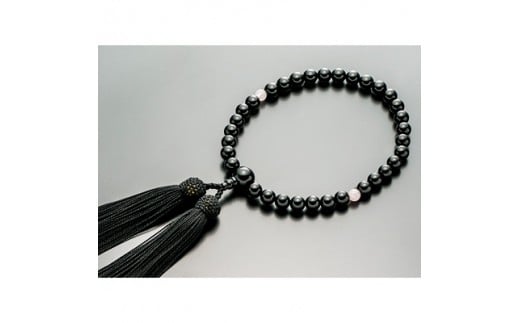 数珠男女ペアセット(黒オニキス・黒オニキス・桃色水晶・正絹房)※ペア桐箱入【1033204】