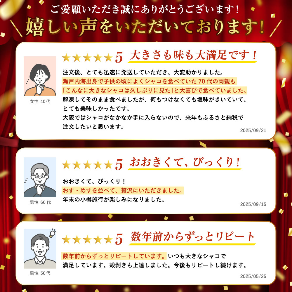 【ふるさと納税】【容量が選べる】ボイル しゃこ オス・メス 12000円 ~ 40000円 1万2000円 ~ 4万円 | しゃこ 蝦蛄 ボイルしゃこ 加熱済 調理済 刺し身 刺身 新鮮 小分け 保存 冷凍 おかず 惣菜 お取り寄せ 小樽市 北海道 送料無料