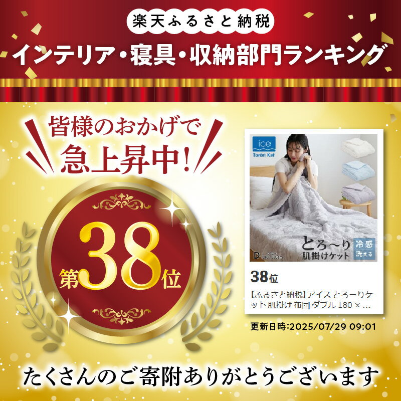 【ふるさと納税】アイス とろーりケット 肌掛け 布団 ダブル 180 × 200cm 選べる カラー アイボリー ブルー グレー キルトケット ひんやり 冷感 洗える 夏 熱帯夜 柔らか リバーシブル 掛け心地 レーヨン 吸湿 ポリエステル マイクロ 長繊維 清潔 江崎ふとん 送料無料