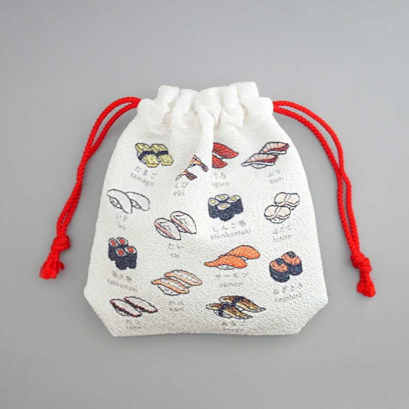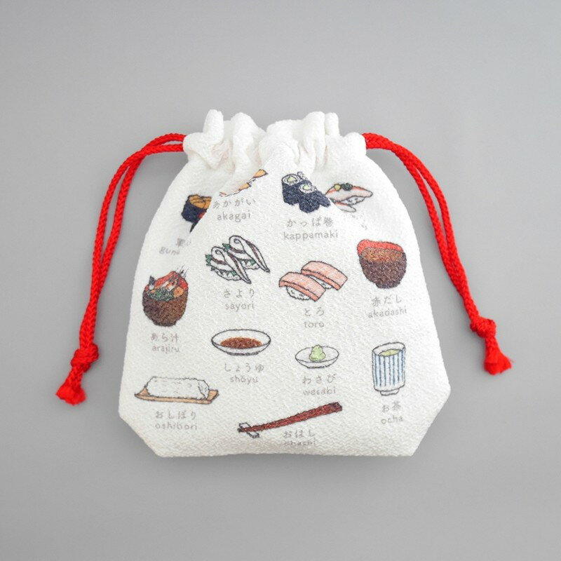【ふるさと納税】丹後ちりめん にほんご巾着 「sushi(寿司)」 「izakaya(居酒屋)」「yatai(屋台)」 「wagashi(和菓子)」 サイズ:約13.5cm×17.5cm
