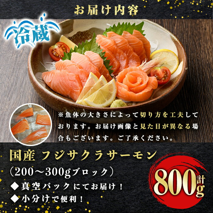 【ふるさと納税】 見逃し厳禁! 生の感動をお届け!【日本初:完全陸上養殖】「フジサクラ サーモン 」【 生 】800g 国産 サーモン アトランティックサーモン ブロック 刺身 冷蔵 小分け 真空パック さしみ 刺し身 魚介 魚 海鮮 柵 海鮮丼 カルパッチョ Fuji Sakura Salmon