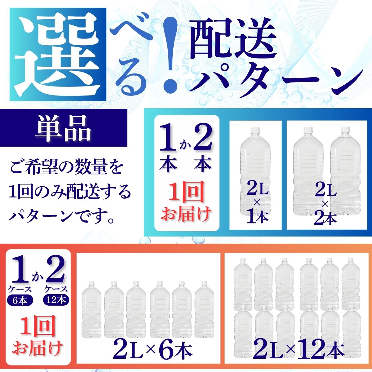 - 【ふるさと納税】ミネラルウォーター「甲斐のやさしい水 富士山麓」ラベルレス 2L【選べる数量/配送スタイル】単品・3ヶ月/6ヶ月/12ヶ月の定期便/ お水 軟水 飲料 天然水ペットボトル 生活必需品 消耗品 備蓄 防災 災害対策 エコ 人気 おいしい 選べる 送料無料[n0628_nsk]
