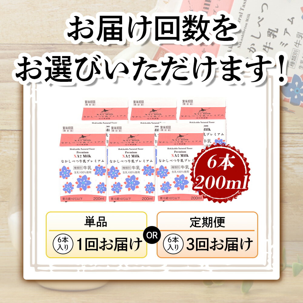 - 【ふるさと納税】【お届け回数が選べる!】なかしべつ牛乳プレミアム NA2 MILK 200ml×6 | 牛乳 ミルク プレミアムミルク 乳製品 乳飲料 健康 朝食 高栄養 a2 牛乳 国産 お取り寄せ ふるさと納税 北海道 中標津町