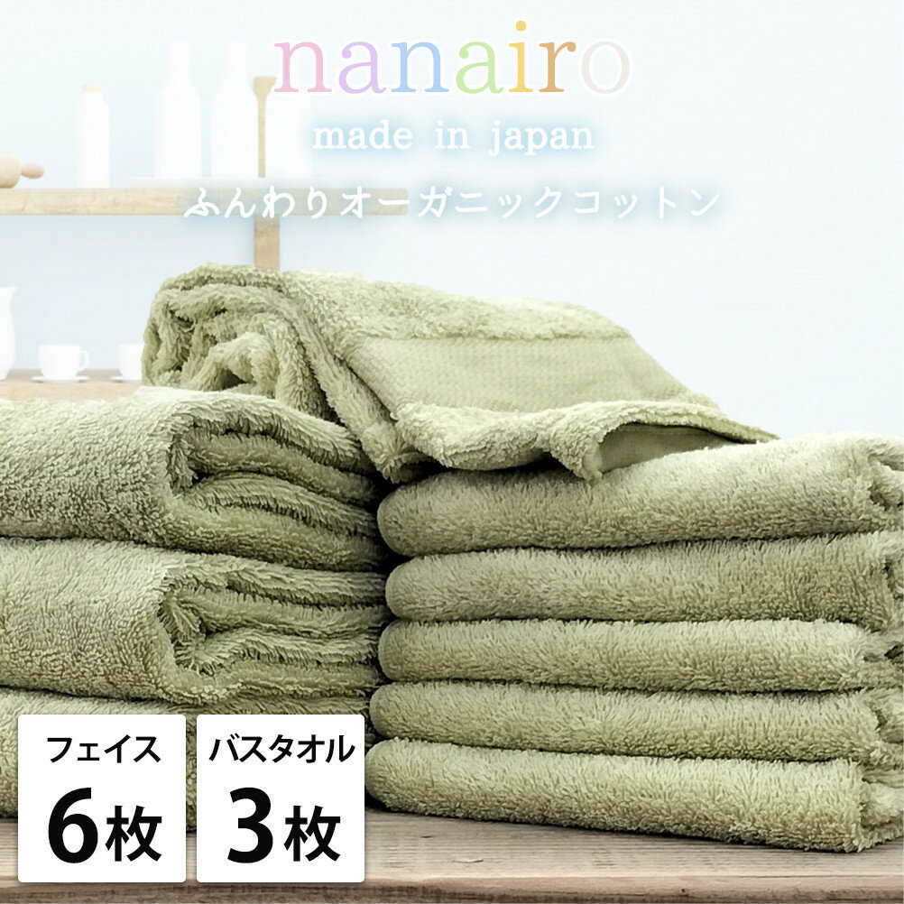 【ふるさと納税】【選べるカラー フェイス6枚・バス3枚】しなやかオーガニックコットンタオルセット(ナナイロ) | タオル 日用品 人気 おすすめ 送料無料