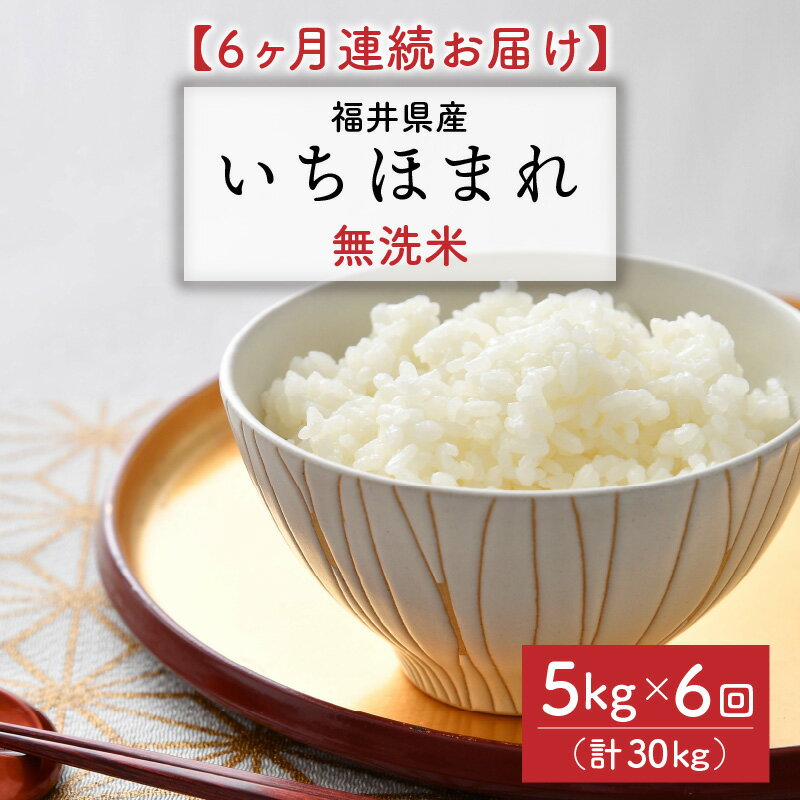【ふるさと納税】【令和7年産・新米】定期便 ≪6ヶ月連続お届け≫ 福井県のブランド米 いちほまれ 無洗米 5kg × 6回 計30kg 【 無洗米 人気 品種 ブランド米 特A 】