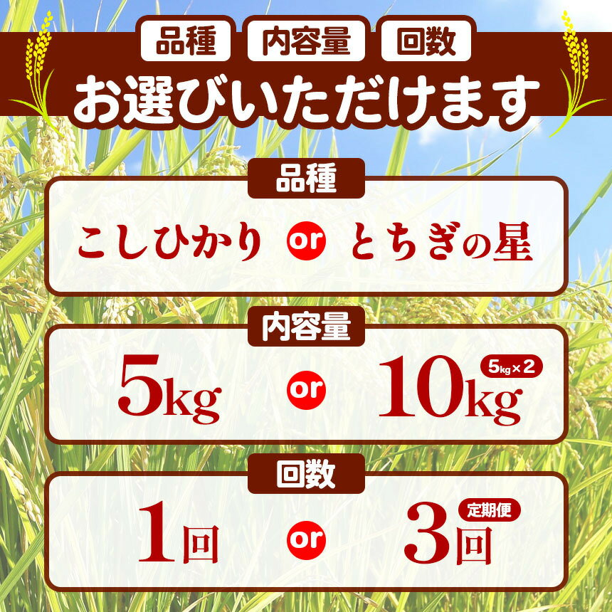 - 【ふるさと納税】 選べる 定期便 新米 米 お米 こめ コメ こしひかり コシヒカリ とちぎの星 1回 3回 5kg 10kg | 10月 11月 12月 2025年 秋 白米 ごはん ご飯 人気 おいしい 旨い おにぎり おむすび お弁当 限定 栃木県産 先行予約 栃木県 真岡市 送料無料