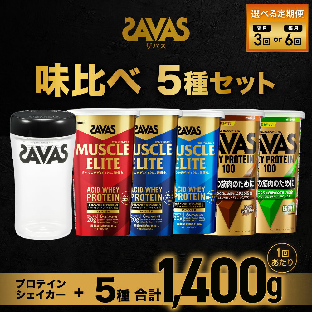 【ふるさと納税】<選べる> ザバス 味比べ5種セット(ココア味280g・/ヨ-グルト風味280g・バニラ風味280g・リッチショコラ味280g・抹茶味280g・シェイカー) 280g 5種 1回あたり 合計1,400g 2ヶ月毎に3回または6ヶ月連続お届け 送料無料