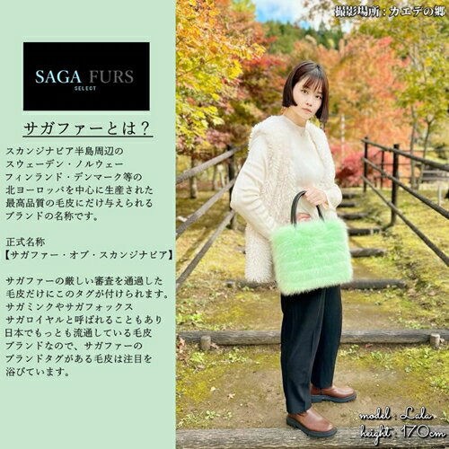 - 【ふるさと納税】SAGAFOX 毛皮 バッグ ライトグリーン No.J-1/西勝毛皮 手提げ かばん ファー 小物入れ シャドー サガ フォックス レザー ファッション オシャレ 高級 奈良県 宇陀市