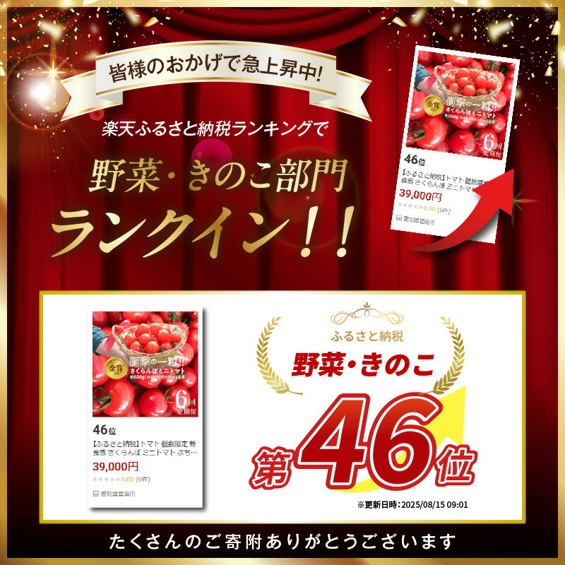 - 【ふるさと納税】個数限定 さくらんぼミニトマト 定期便 約500g 6回 新食感 ぷちぷよ 野菜ソムリエサミット 金賞 受賞 ランキング急上昇 産地直送 国産 野菜 濃厚 人気 衝撃の一粒 ツヤツヤ ぷにぷに やわらかい 希少 長田農園 お取り寄せ 愛知県 碧南市 送料無料