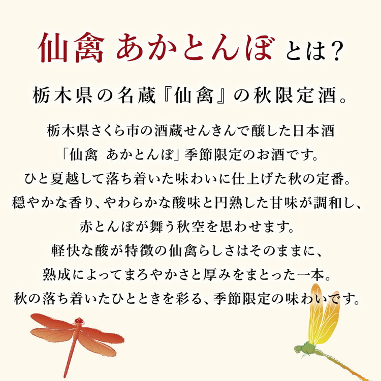 日本酒 仙禽 季節限定酒 仙禽 あかとんぼ 2025 AKATONBO| 小春日和の穏やかな日は,秋桜を見にいきませんか。数量限定 せんきん 栃木県 さくら市 送料無料