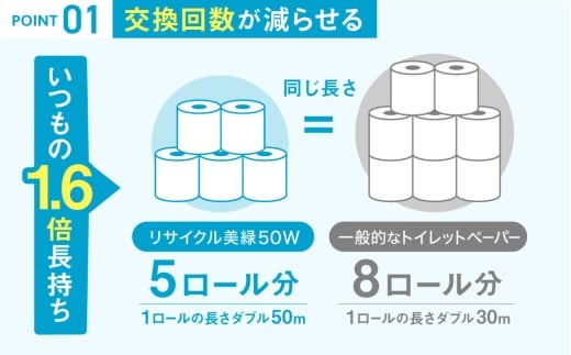 - 【1.6倍巻き 96ロール相当】ダブル 60ロール 50m トイレットペーパー リサイクル美緑50W 日用品 生活用品 消耗品 備蓄 防災 必需品 再生紙 環境にやさしい エコ美濃桜製紙 1.6倍巻 長持ち 交換 頻度 個包装 芯あり エンボス加工