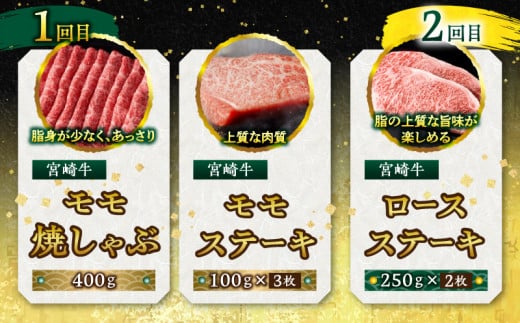 - 宮崎牛を食べつくす!ぎゅぎゅっとバラエティ定期便(総重量3.85kg) 定期便 宮崎牛 モモ肉 もも肉 焼きしゃぶ 焼しゃぶ しゃぶしゃぶ しゃぶしゃぶ用 ロースステーキ 焼肉 焼き肉 BBQ バーベキュー 焼き肉用 国産牛 黒毛和牛 牛肉 肉 詰め合わせ セット モモ ステーキ ロース ウデ 肩ロース バラ ミスジ グルメ 定期 人気 おすすめ 宮崎県 宮崎市 宮崎 _M132-T002