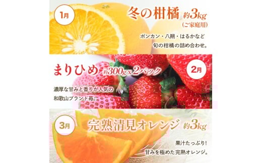 - わかやま旬のくだもの定期便 全12回【S】※北海道・沖縄・離島への配送不可 (配送日時指定不可) / 定期便 フルーツ みかん いちご イチゴ 清見オレンジ セミノール 河内晩柑 カラマンダリン すいか 桃 ジュース 柿 柑橘 12回 和歌山【ard-tkb901A】