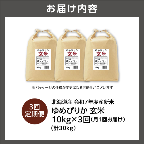 【先行予約】【定期便】北海道産 ゆめぴりか 玄米 10kg×3回