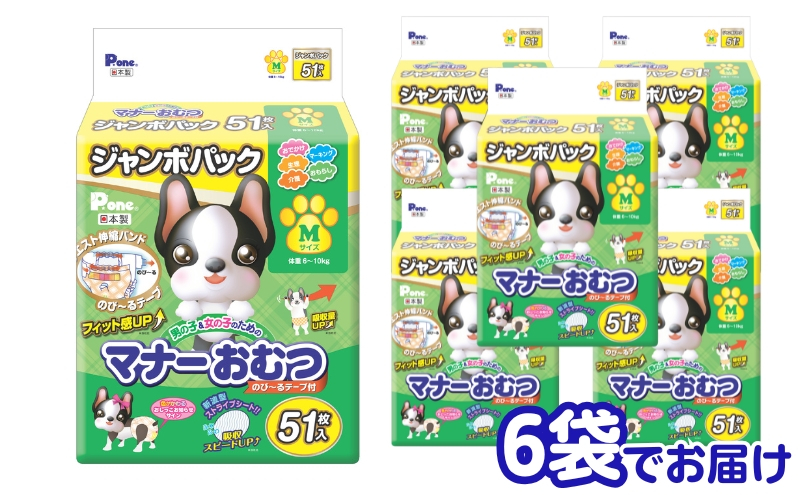マナーおむつのび~るテープ付 M 51枚 × 6袋