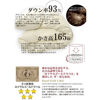 ザ・羽毛布団 ロイヤルゴールドラベル セミダブル 170×210cm ダウン93% 掛け布団 羽毛【1376647】
