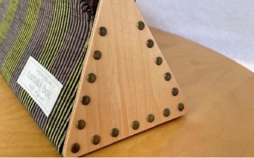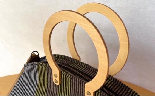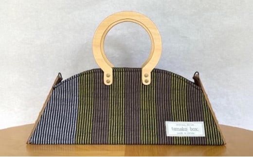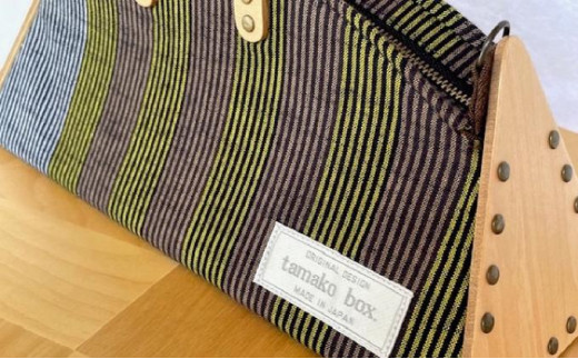 - △屋根のKurumeKasuriバッグ2way 白⻩茶黑ストライプ