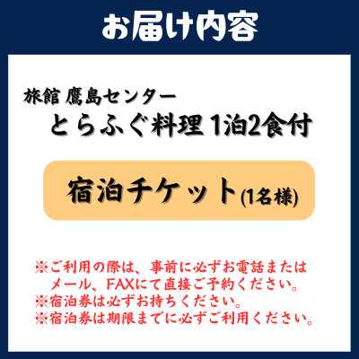 旅館 鷹島センター トラフグ料理1泊2食付 宿泊チケット(1名様)【配送不可地域:離島】【1000157】