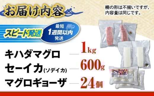 - 漁港直売店イチオシ3種セット (冷凍キハダマグロ1kg / セーイカ0.6kg / マグロギョーザ24個) 沖縄市 / 沖縄市漁業協同組合 パヤオ直売店 [BCDZ004]