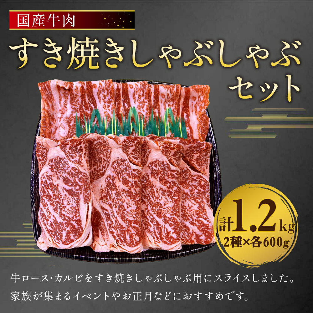 - 【ふるさと納税】国産牛肉 すき焼きしゃぶしゃぶセット 約600g×2種類 合計約1.2kg すきやき ロース カルビ 国産 牛肉 冷凍 送料無料
