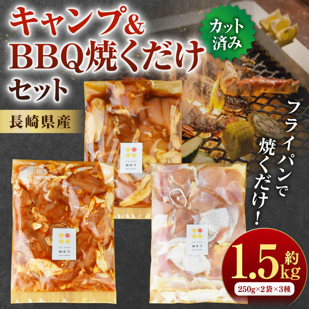 【ふるさと納税】【7営業日以内発送】キャンプ&BBQ焼くだけセット 計1.5kg (250g×6袋) 味付きチキン 3種類 各2袋 塩にんにく味 ハワイアンバーベキュー味 スパイシーチキン 長崎ばってん鶏 鶏肉 お肉 冷凍 国産 九州 長崎県 長崎市 送料無料