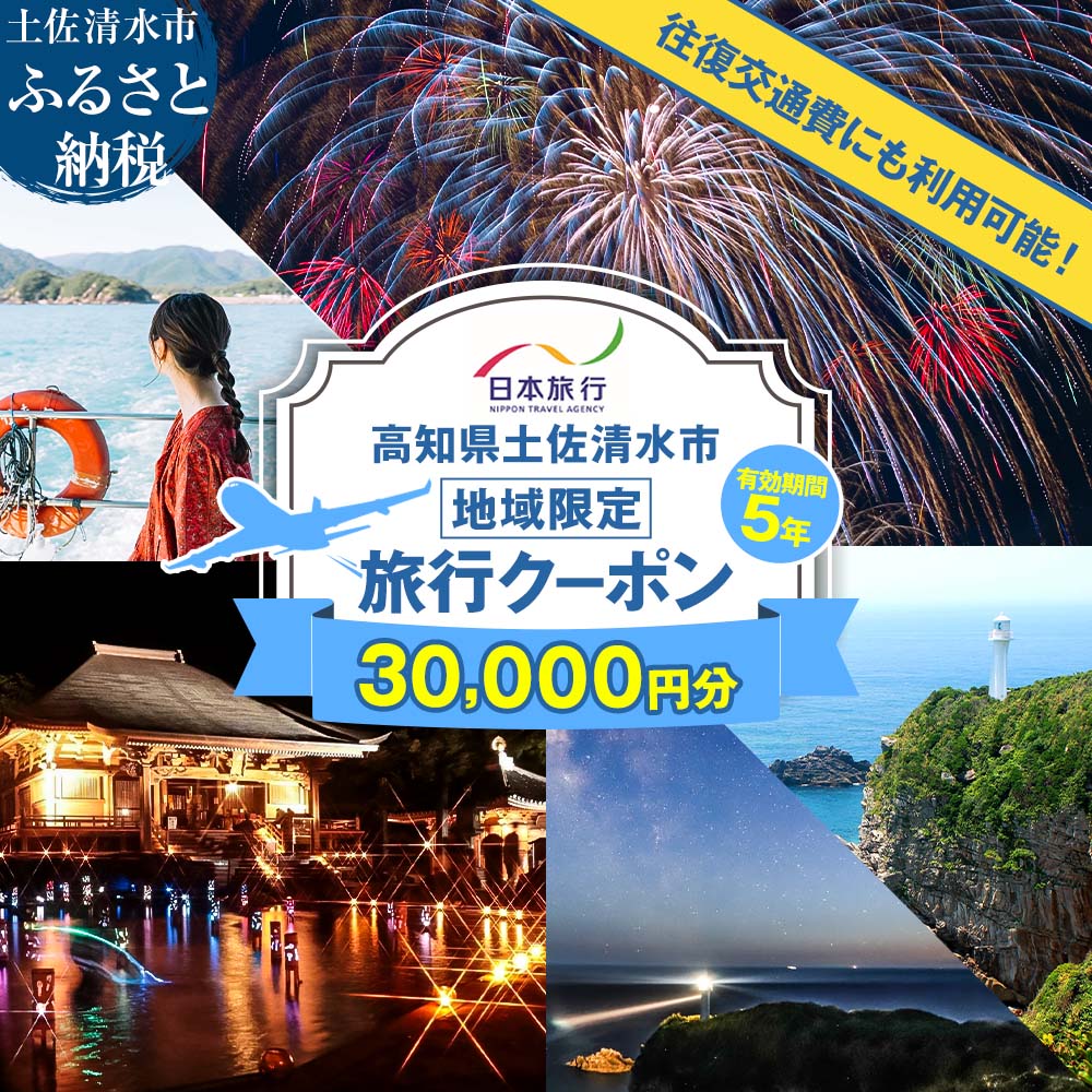 - 【ふるさと納税】高知県土佐清水市 日本旅行 地域限定旅行クーポン 寄付額100,000円 クーポン30,000円分 ホテル 観光 旅行 交通費 国内旅行 クーポン 予約 宿泊 宿泊券 自然 旅館 ひとり カップル 夫婦 親子 高知県 高知 土佐清水市 足摺岬 10万円 10万円分 返礼品【R01428】