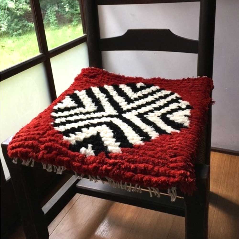 - 【ふるさと納税】【倉敷ノッティング】手織ウール 椅子敷き 赤地/紺白紋 丸模様 分厚い クッション 椅子 一生物 岡山県特産 倉敷本染手織研究所 織物 ノッティング織 メリノウール 100% 岡山県 倉敷市 送料無料