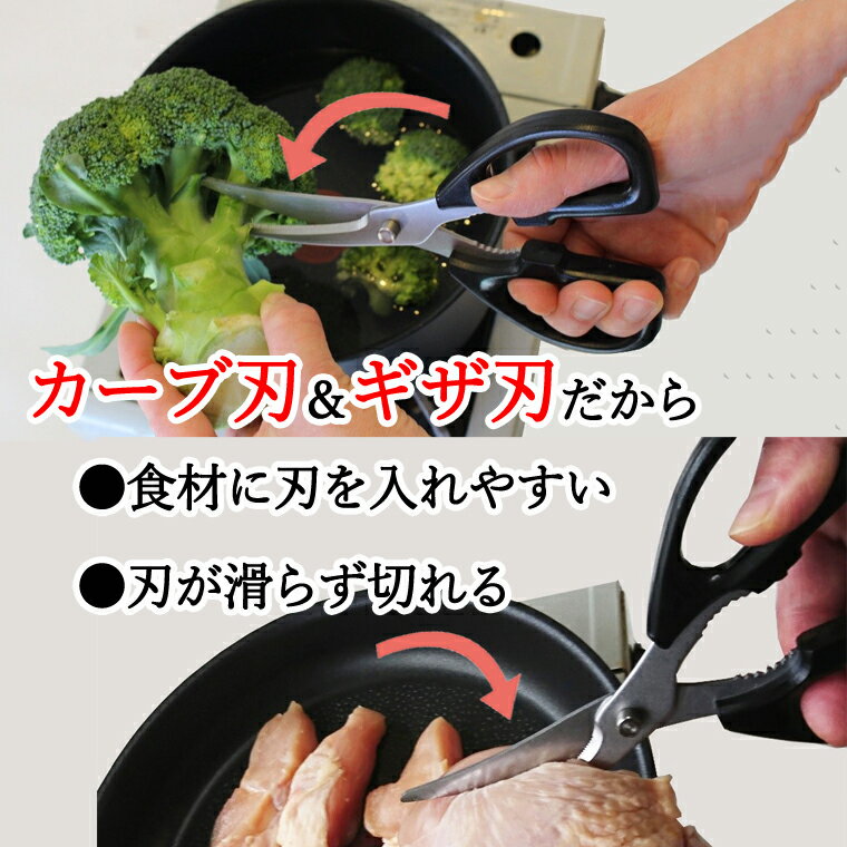 - 【ふるさと納税】<アイディア製品> 刃先を浮かせて置けるキッチンバサミ ~食洗器対応 衛生的に置ける 食洗機対応 カーブ・ギザ刃で切りやすい 刃先が床につかないからテーブルが汚れない