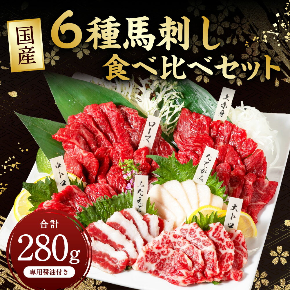 【ふるさと納税】国産 6種 馬刺し 食べ比べセット 計約280g 専用醤油付き(80ml×1本) 上赤身・霜降り(中トロ)・大トロ・たてがみ・ロース・ふたえご 計6パック 各1パック 馬刺 馬肉 お肉 しょうゆ 詰め合わせ 冷凍 熊本県 上天草市 送料無料
