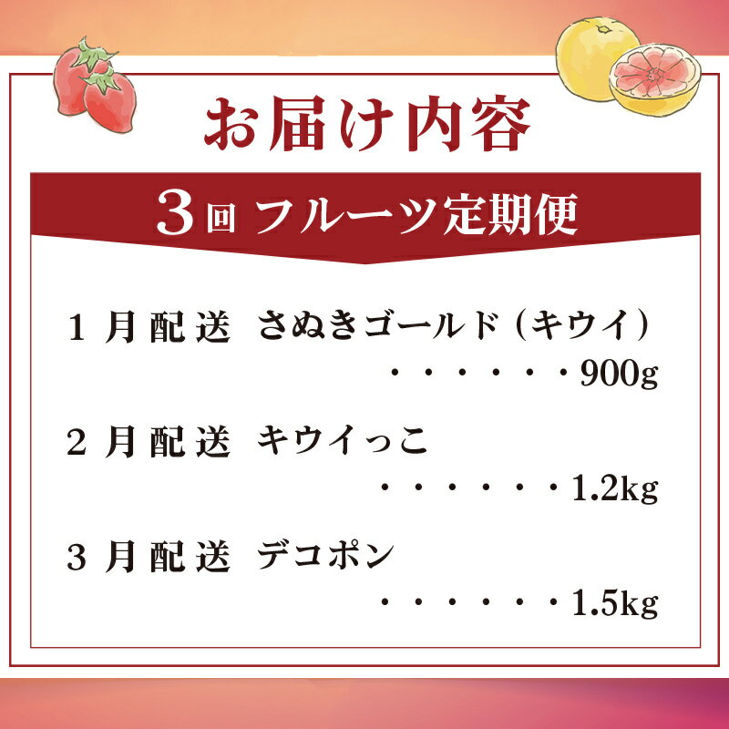 - 【ふるさと納税】 旬のフルーツ 定期便 3回 Gコース 果物 フルーツ キウイ さぬきゴールド ゴールドキウイ キウイフルーツ キウイっこ グリーンキウイ デコポン 不知火 柑橘 みかん 蜜柑 ふるさと納税定期便 ふるさと納税フルーツ ギフト 贈答 送料無料 ふるさと納税 香川県